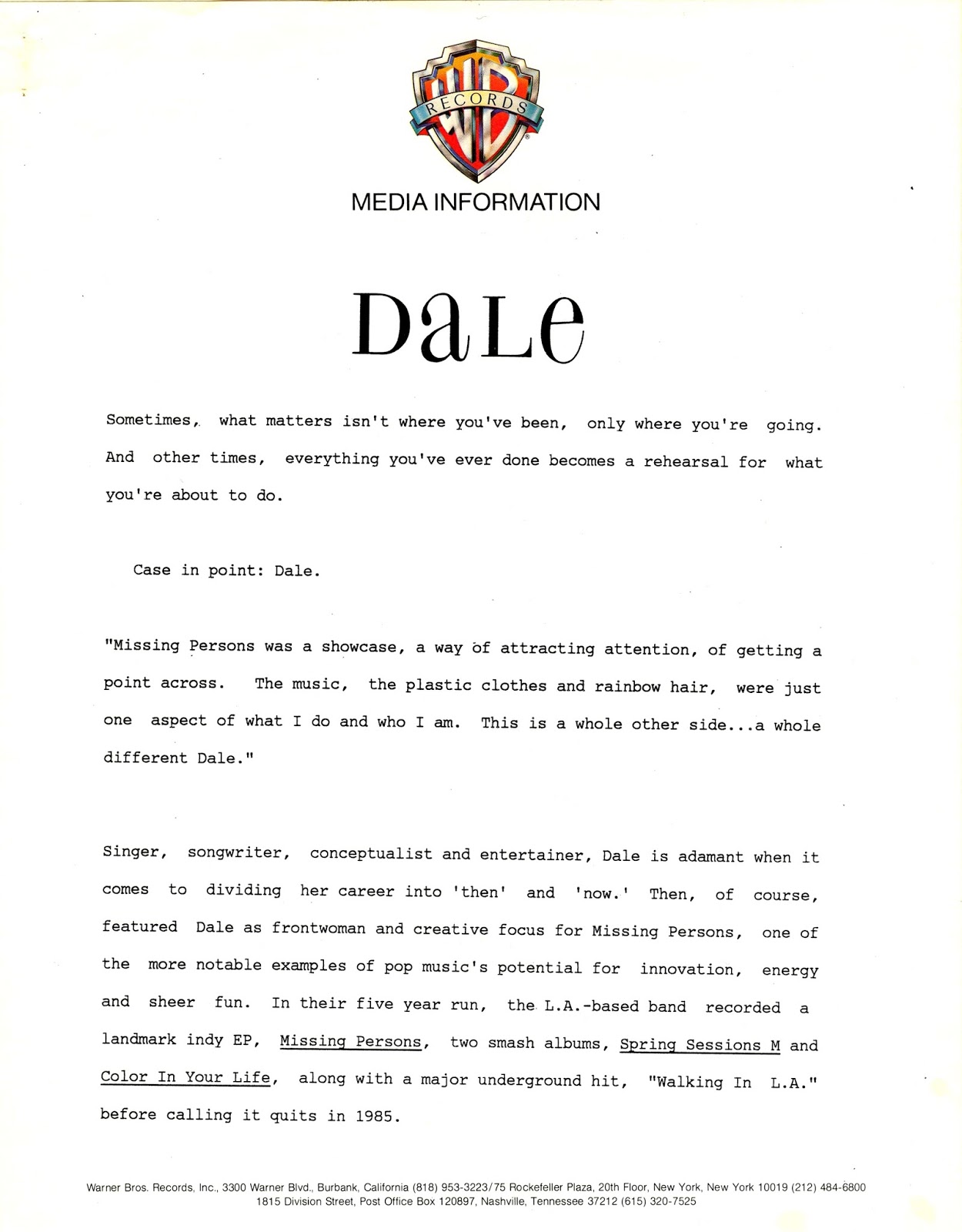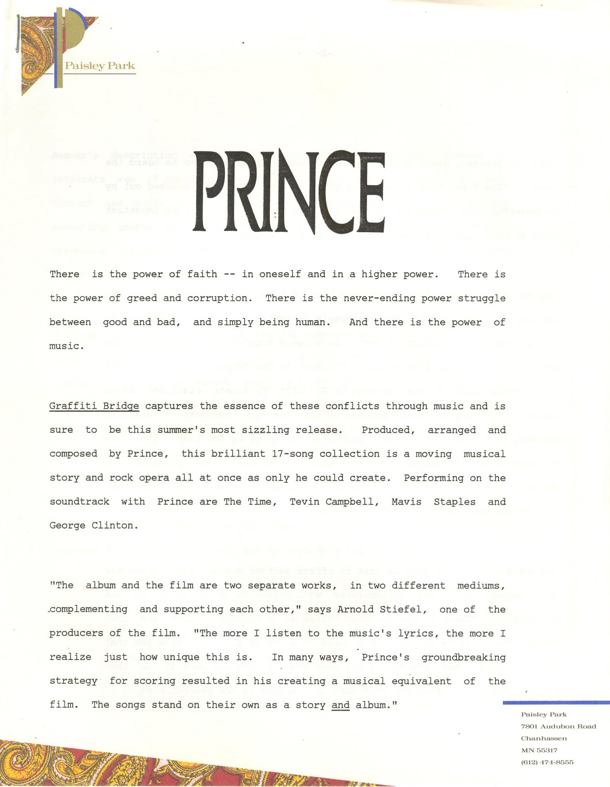 Initial press kit promoting PRINCE to record labels.